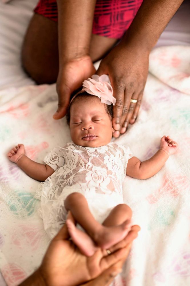 Expert Care and Comfort: At Atalia's Photos, we understand the importance of safety and comfort when photographing newborns. That's why we take every precaution to ensure that your baby is safe and comfortable throughout the photoshoot. From keeping the studio warm and cozy to using soft, soothing props and fabrics, we create a serene and calming environment that allows your baby to relax and sleep peacefully. With gentle hands and expert care, we'll capture those fleeting moments of newborn sweetness that you'll cherish forever.
